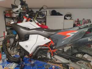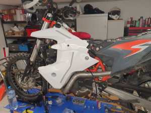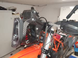 You know the stock version of the bike, which is really great but I wanted something different. I installed the Carbon Fox KTM 690 ENDURO R RALLY CARBON KIT. It gives a great look to the bike, but the downsize would make the bike is now obviously Rally oriented and less agile on single tracks.
