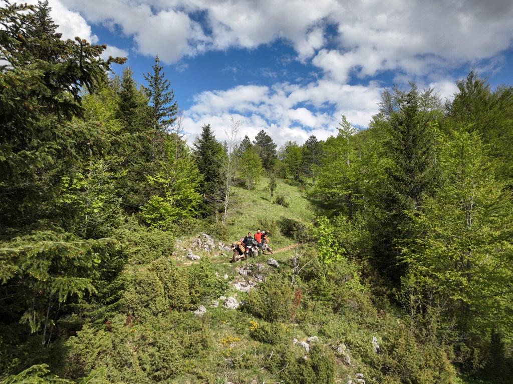 Once we crossed the border into Bosnia, we quickly returned to the trail that took us to Lake ล atorsko Jezero. The Bosnian TET offered a different atmosphere, especially in the forest. The paths were great, but we had to be careful due to illegal deforestation and wood trafficking in the region. ล atorsko Jezero, a glacial lake located at 1488 meters, was perfect for a break and picnic.