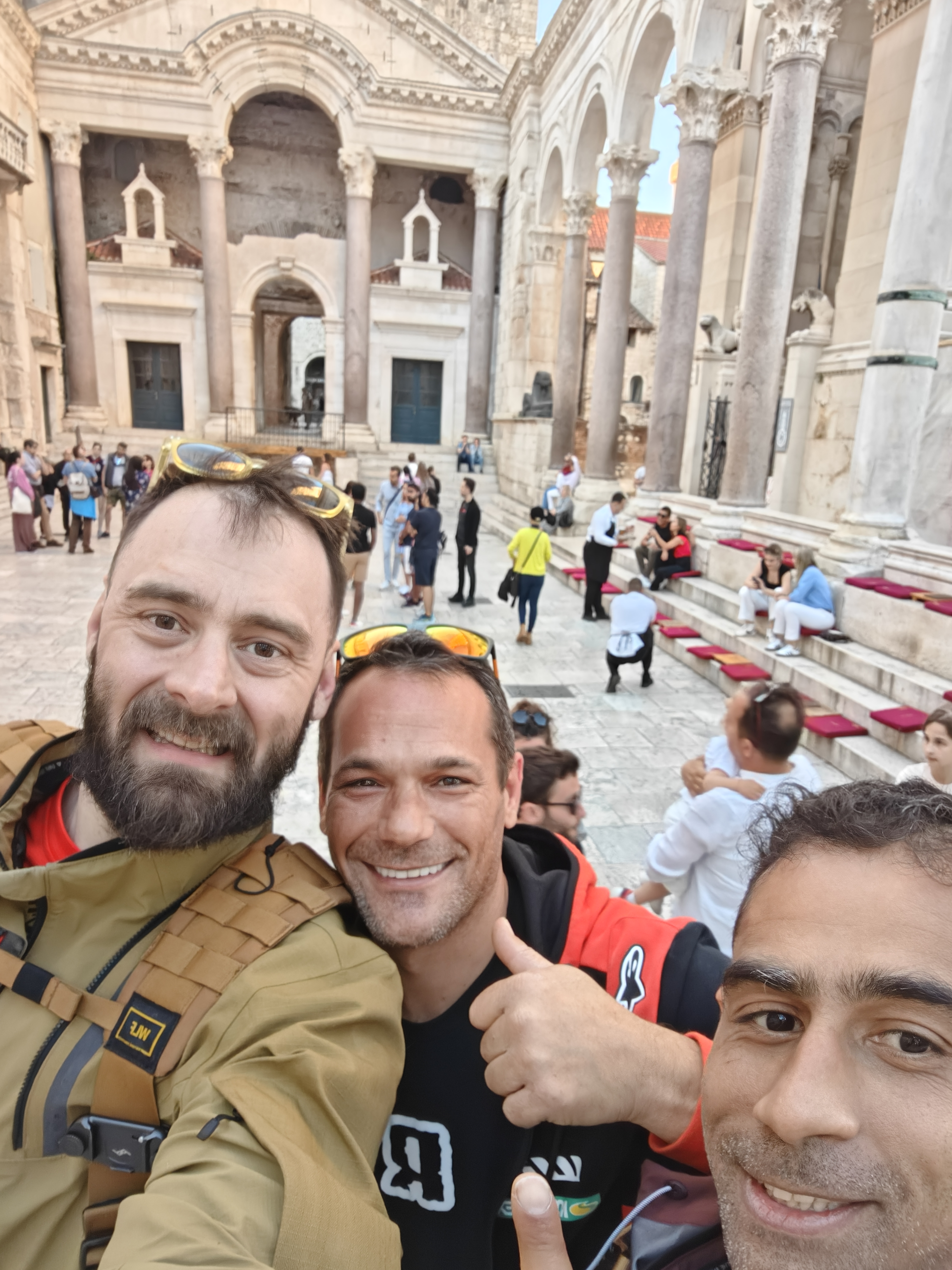 Our plan was simple: follow the TET, starting in Croatia, crossing Bosnia, heading to Montenegro, and finishing along the Croatian coast. However, before we could begin our motorcycle adventure, we had to drive to Split with our bikes on a trailer. In Split, we met Miro (aka Mika), who graciously kept our car while we had fun. After a well-deserved break, Miro showed us Split from above, and the view was breathtaking.